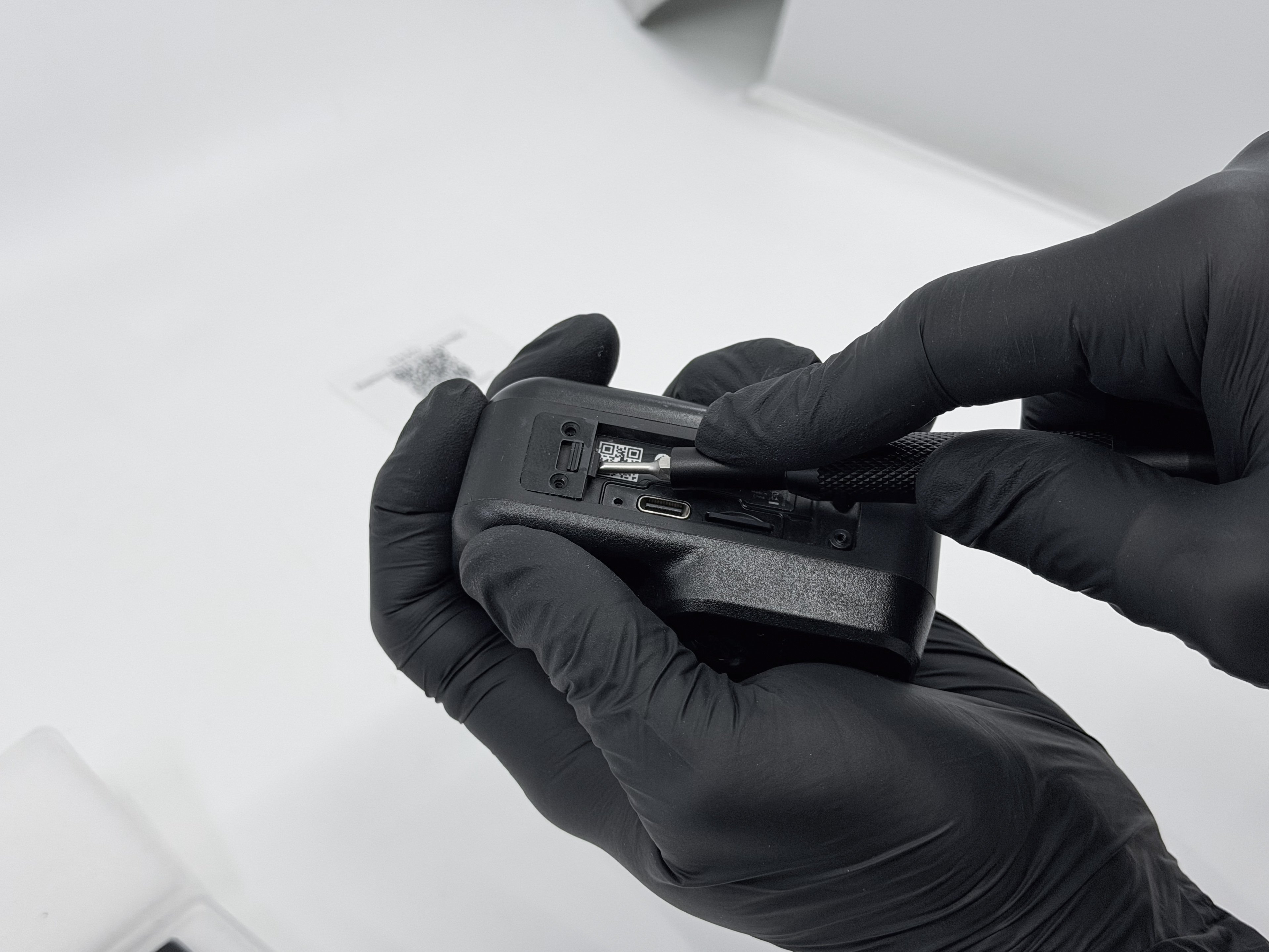 Using your screwdriver or a fine pry tool, gently lift the latching system away from the device body. Do this slowly, as there is a spring in this system that you don't want to lose.