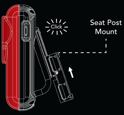 - Slide the seat post mount onto your Fly6 Original; you should hear a click