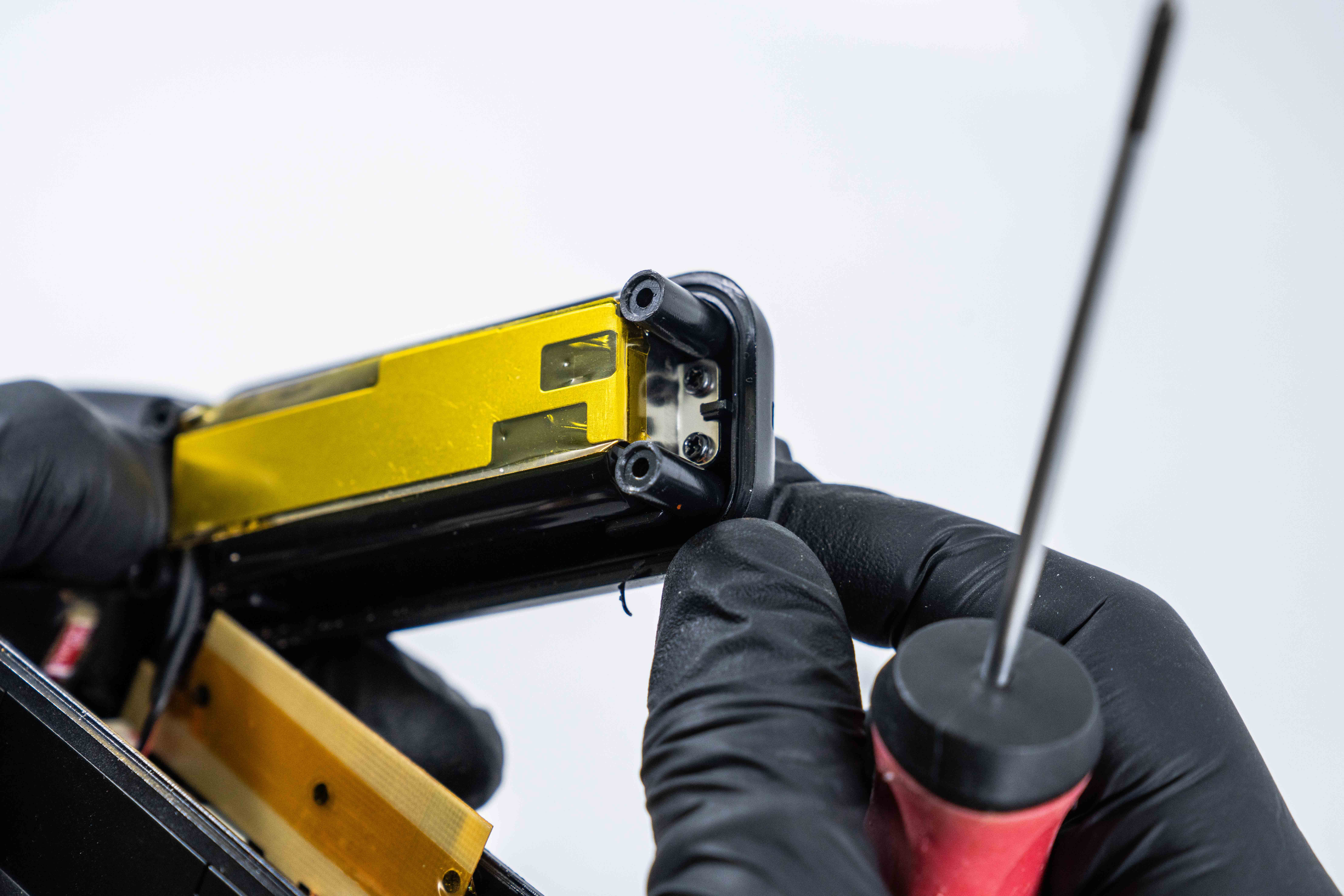 Congratulations! Once you've unscrewed these this is as far as you need delve into your Fly6 Pro, no need to unplug anything or do anything else. Once you get here if you find any dirt, grit or debris (you really shouldn't unless you've been riding with your door open... weren't the beeps annoying?) you should clean that out with a microfiber cloth or paper towel if you have any on hand.