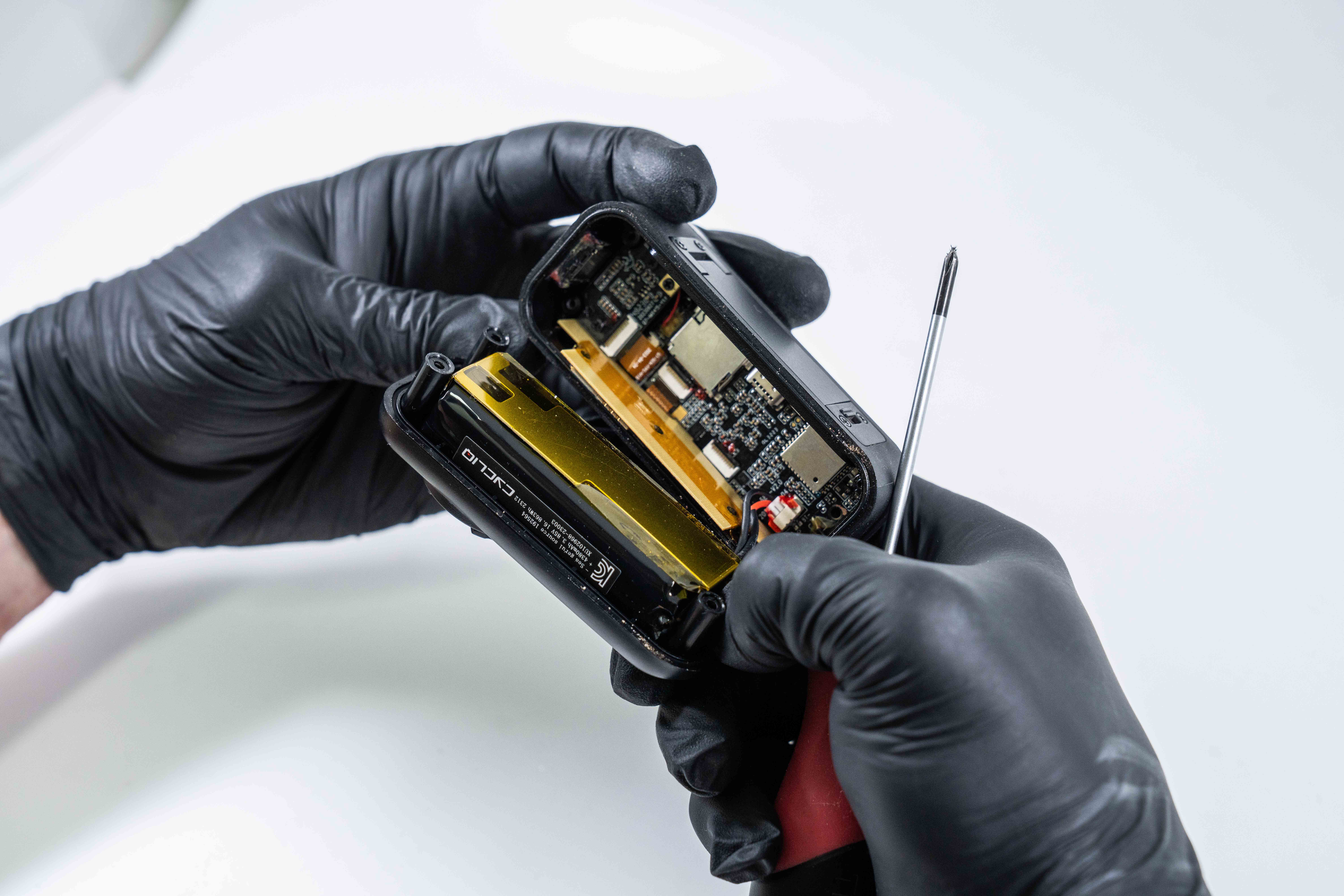 These four nifty little plugs in the corners of the Fly6 Pro Rear Housing have been busy keeping water out of your device but now it's time to remove them.