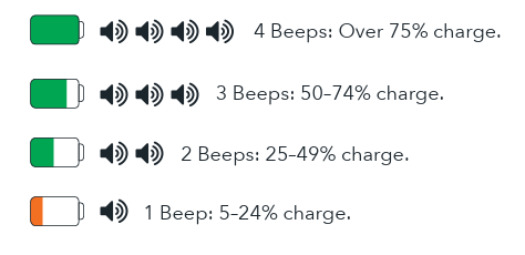 Upon powering up your Fly6[v], an audible battery status will sound, alerting you to the current battery level.